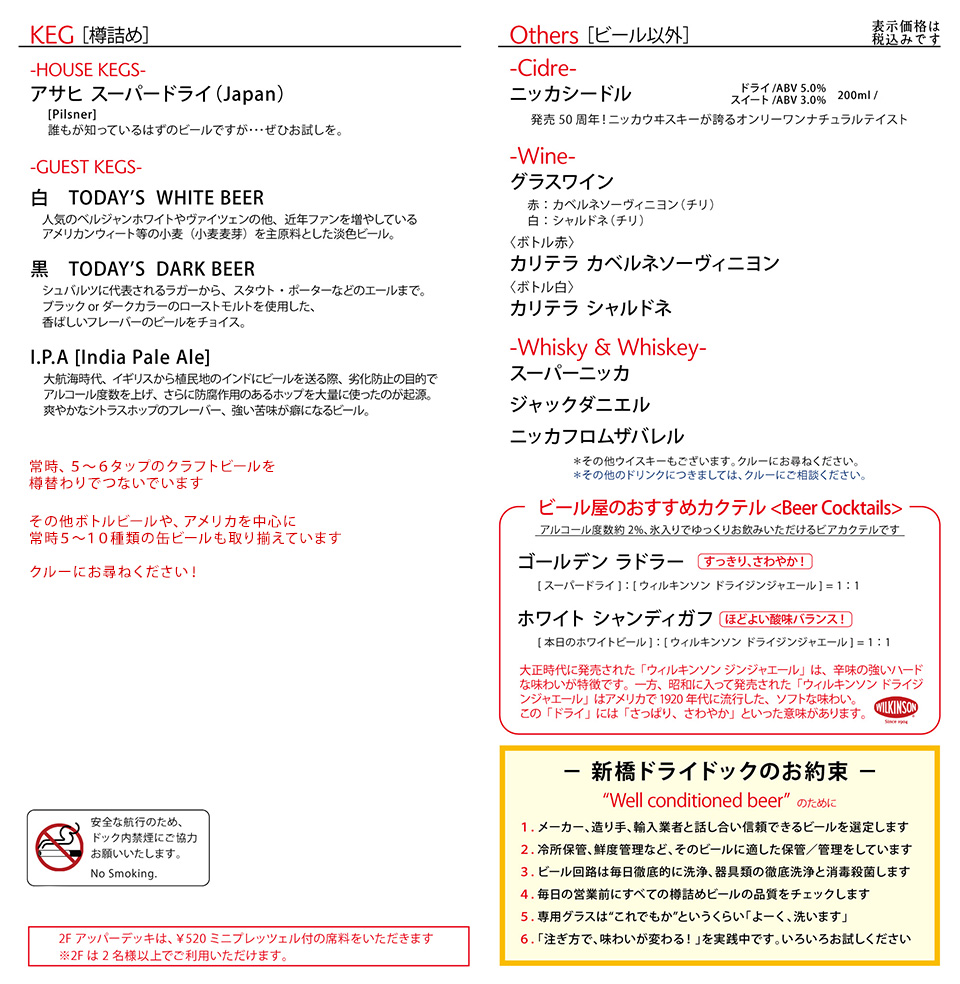 同じスーパードライでも、注ぎ方や取扱い方で味わいがまったく変わります。ドライドックでは、樽詰ビールの保存方法から、使用するディスペンサーやタップも専用設計。ビール回路および器具類の徹底洗浄や専用グラスの採用。こうした細かな管理はビールの味わいに大きく影響します。ぜひドライドックでその違いをご体験ください。